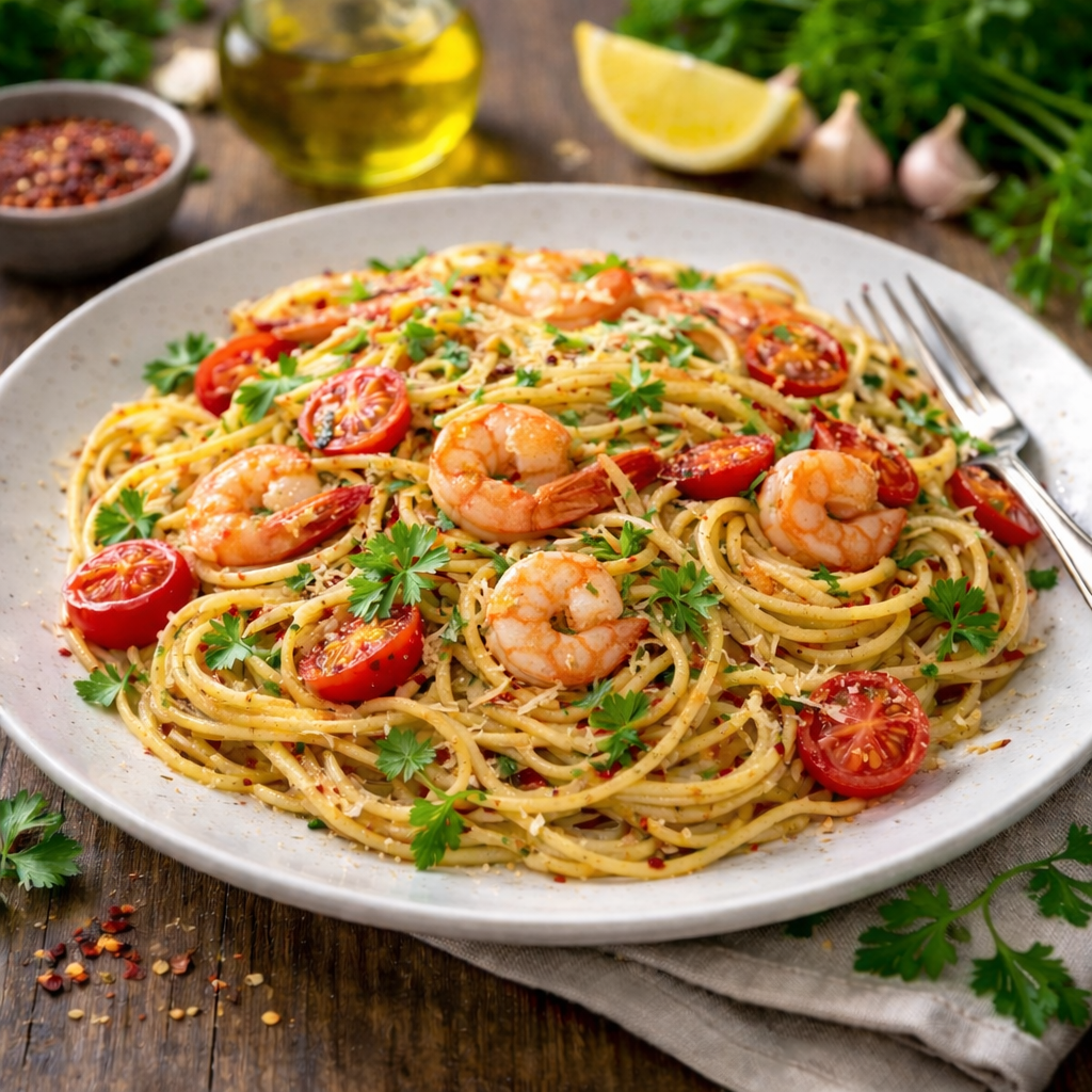 Это блюдо станет прекрасным выбором для изысканного ужина. Нежная паста, сочные креветки и насыщенный сливочный соус с ароматом чеснока и специй создают гармоничный вкус, который легко приготовить дома.